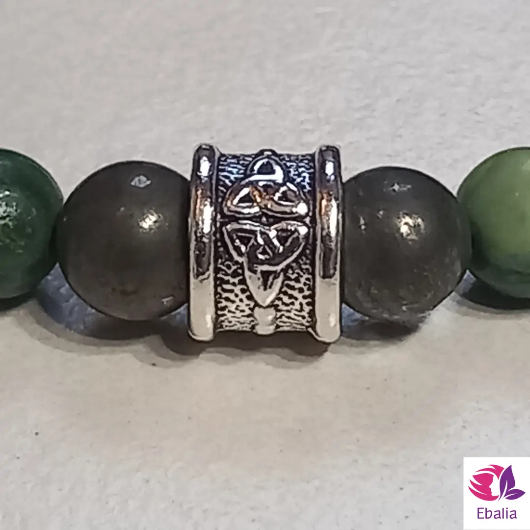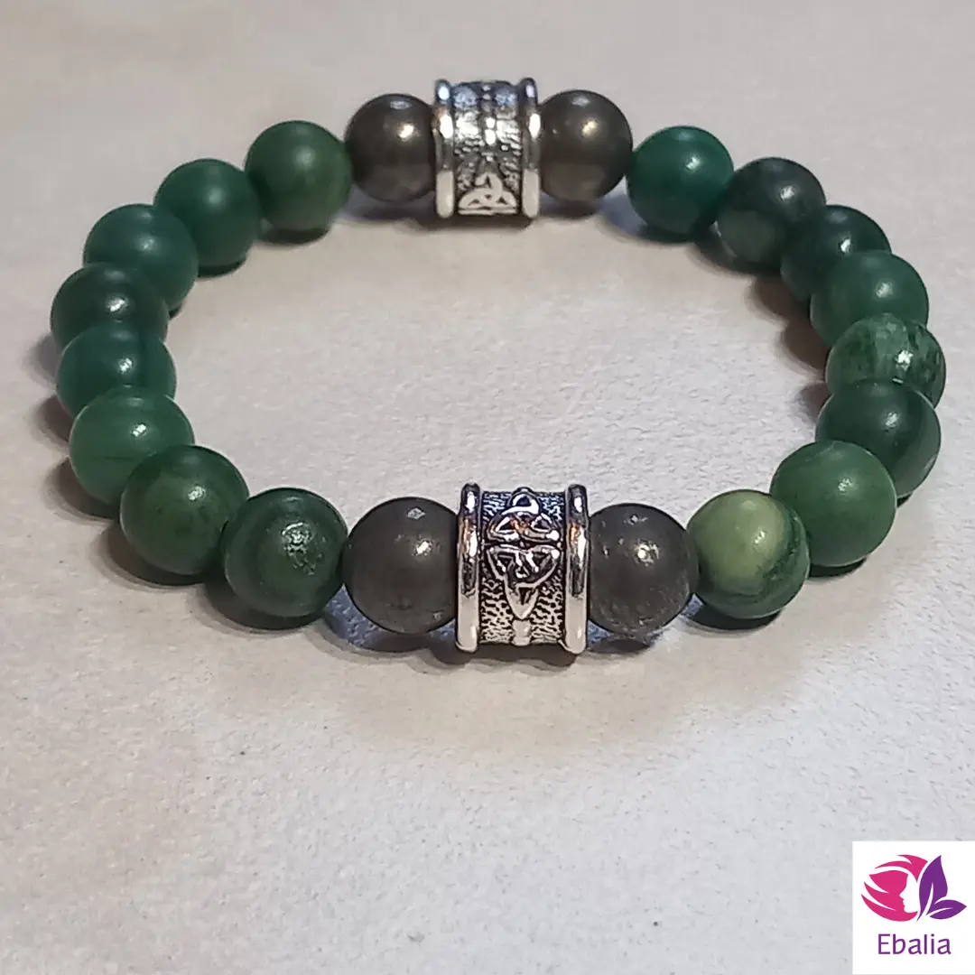 🍀✨ Bracelet Celtique - Triquetra, Jade Africain & Pyrite ✨🍀